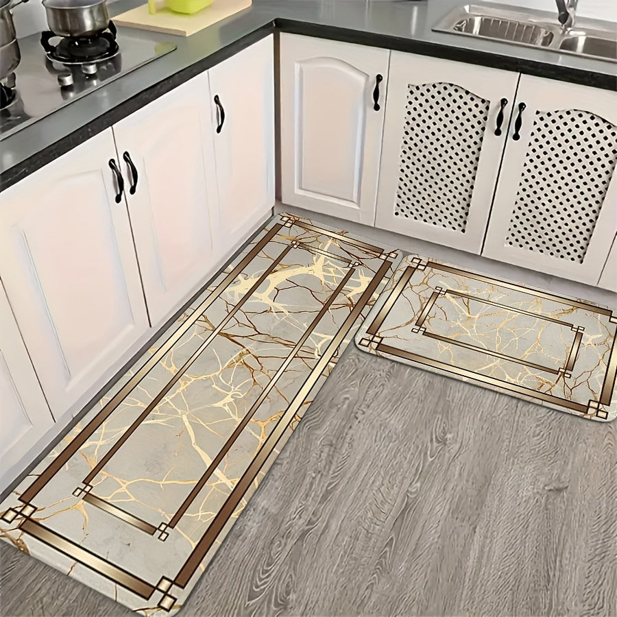 2/3 Piece Spring Summer Kitchen Mat Set - Marble Gold Plated Design Absorbent Washable Floor Mats