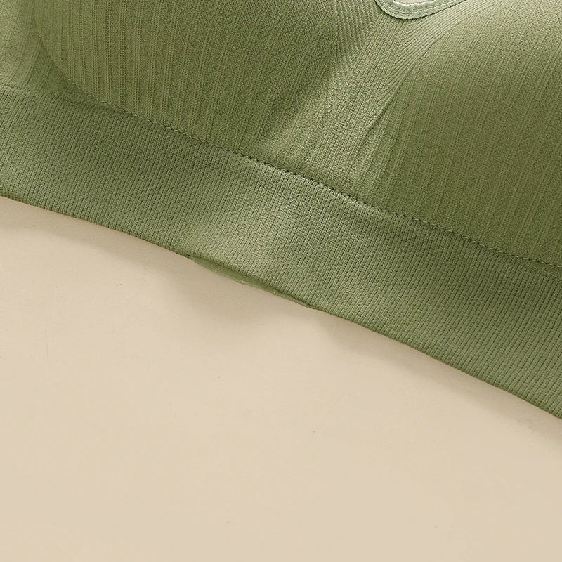 The bra features a wire-free three-quarter cup with middle mold padding to gently support without bulk. Adjustable straps and a three hook-and-eye closure ensure a customized fit for all-day wear. With its solid ribbed texture, this crop-style set exudes a clean, youthful aesthetic—perfect for layering under everyday outfits or lounging with ease.
