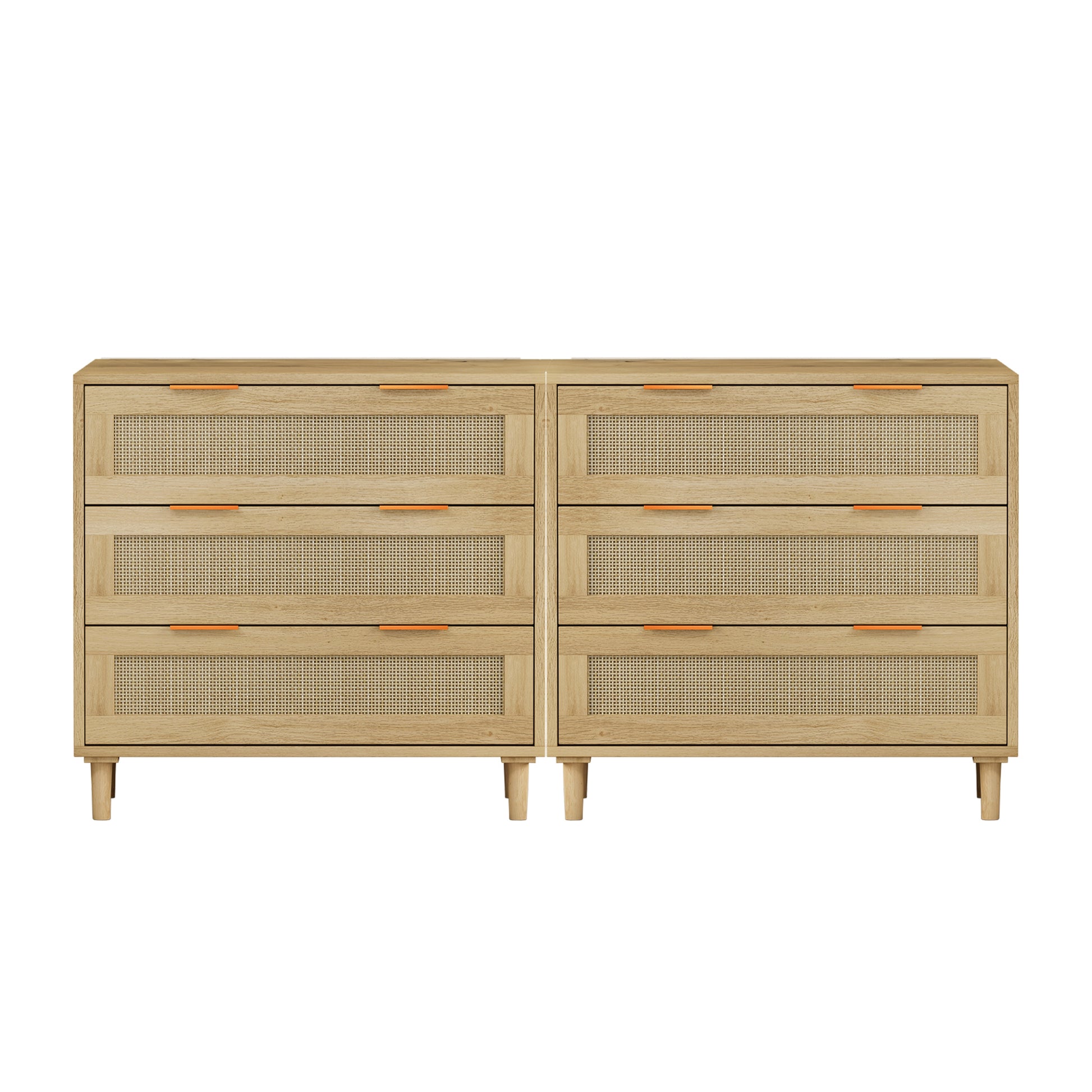 Premium 3-Drawer Rattan Storage Cabinet Set - Oak Finish (Set of 2)