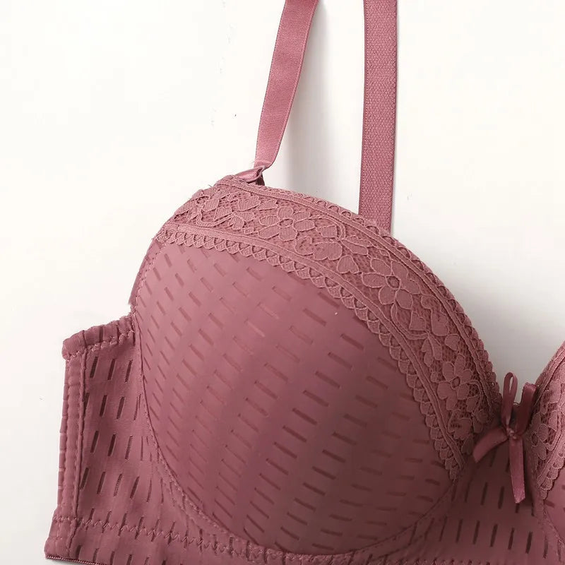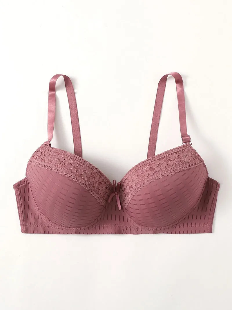 The no-padding construction ensures natural comfort, while the underwire support provides lift and stability. With adjustable convertible straps, you can wear it your way—classic or strapless. A charming bow detail adds a feminine touch, and the back closure with multiple hooks ensures a secure fit.