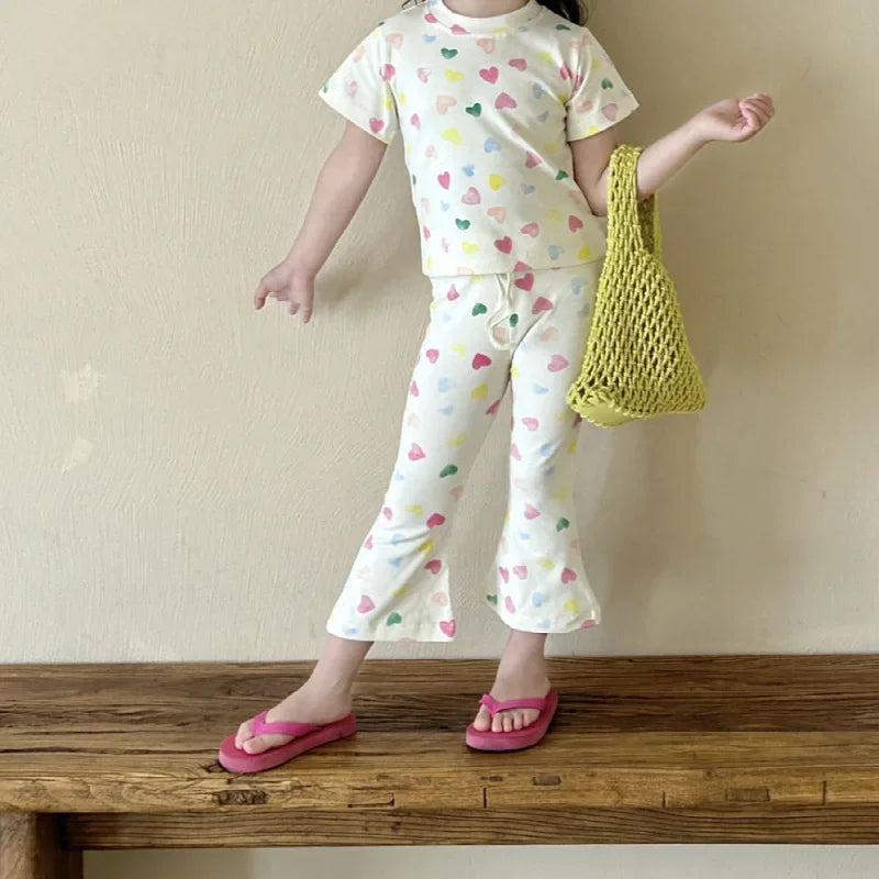 Girls’ Summer Line-Drawing 2-Piece Set – Striped Art-Inspired Tee & Wide-Leg Culottes