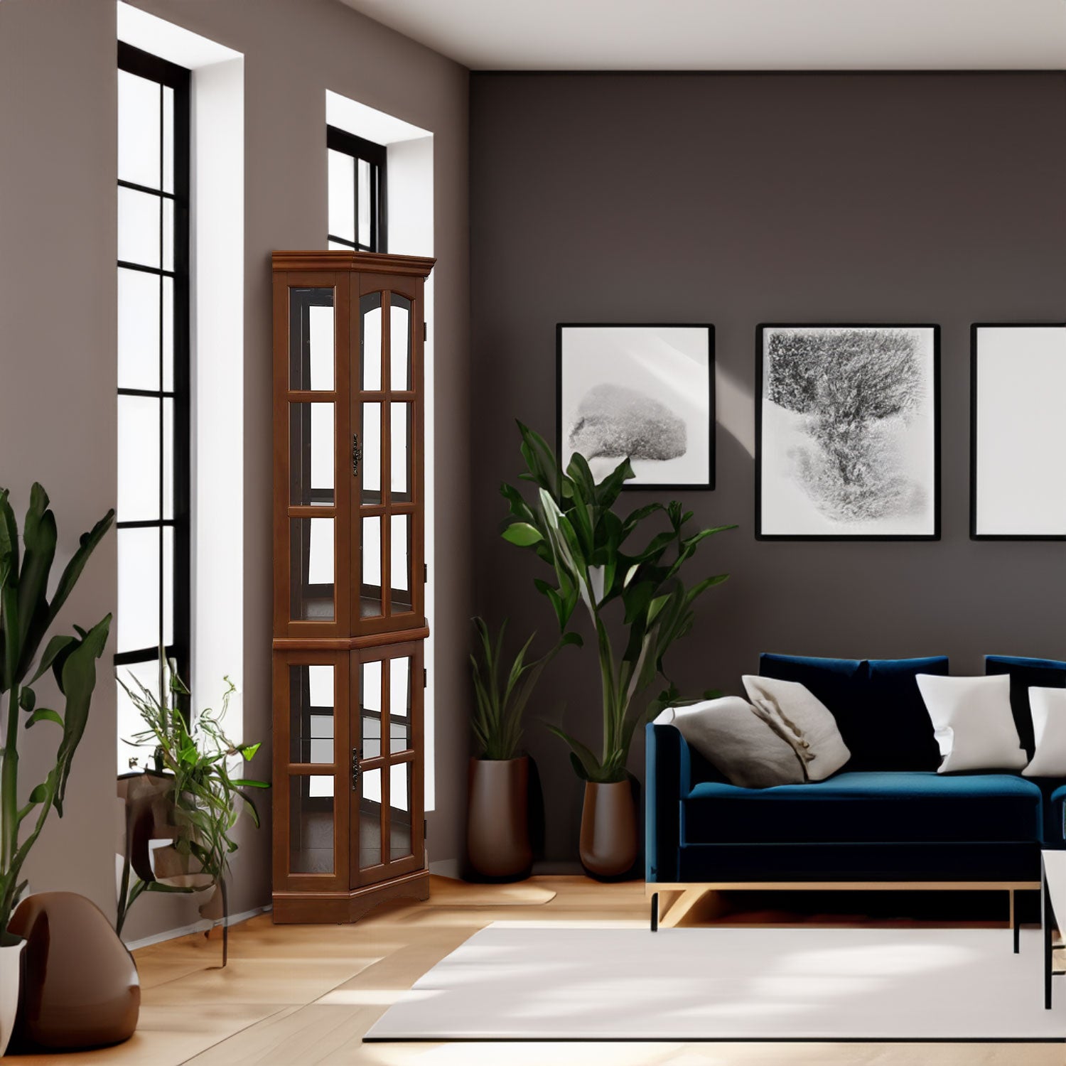 Turn forgotten corners into conversation starters! This magnificent corner curio cabinet with integrated LED lighting system transforms any unused corner into a stunning display showcase for your most treasured possessions. Whether you're displaying fine china, collectibles, books, or decorative items, this elegant walnut cabinet ensures your precious items are beautifully illuminated and perfectly protected.