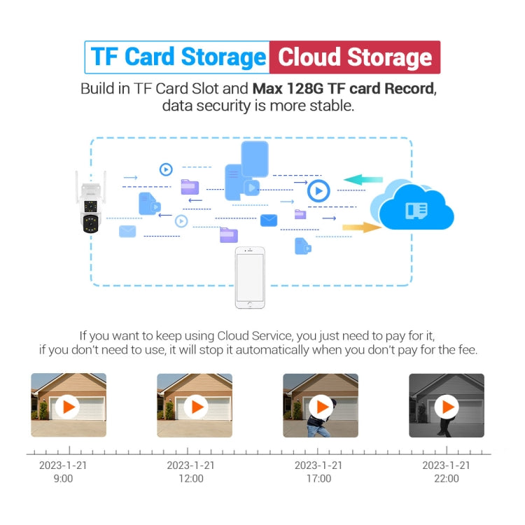11. Video storage: cloud storage service; TF card support (maximum 128G)