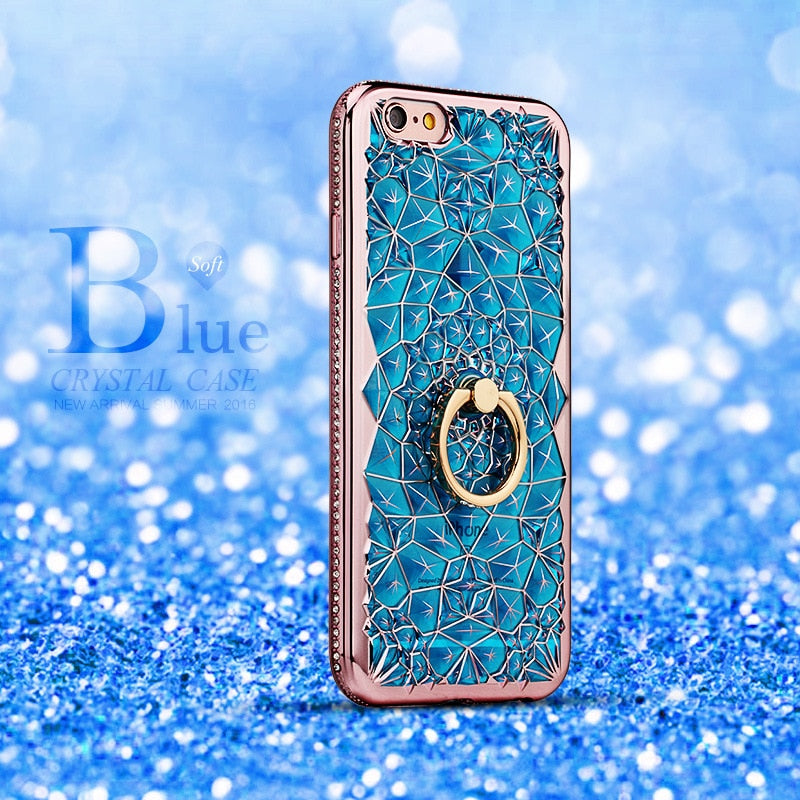 Luxury 3D Glitter Ring Case – Soft TPU Rhinestone Stand Cover for iPhone 5 to XS Max