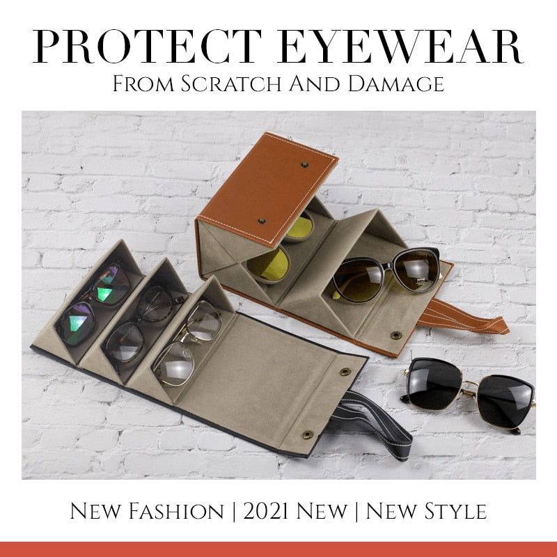 Premium Leather Glasses Storage Case - Elegant Organizer for 2-6 Sunglasses
