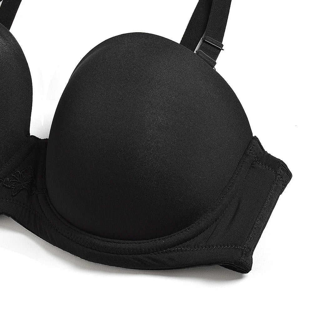 The underwire support and three-hook back closure ensure a secure fit, while the anti-slip design keeps everything in place—no matter how you move. With convertible straps that transform into halter, strapless, or classic styles, this bra adapts to every outfit and occasion. The embroidered solid pattern adds a touch of elegance, making it a must-have for your daily wardrobe or special nights out.