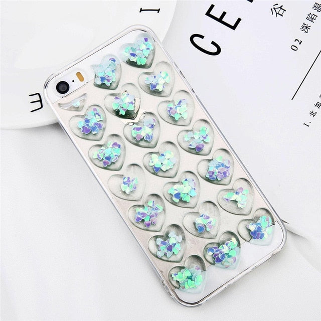 3D Love Heart Glitter Phone Case - Bling Soft Cover for iPhone 5 to XS Max