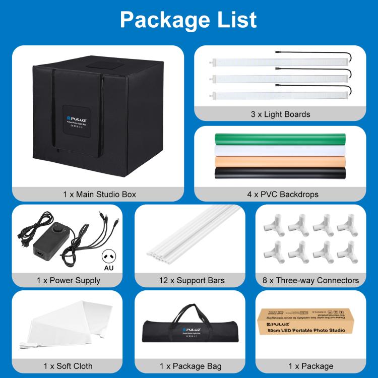 PULUZ 80cm Folding Portable 90W 14000LM High CRI White Light Photo Lighting Studio Shooting Tent Box Kit with 3 Colors Black, White, Orange Backdrops
