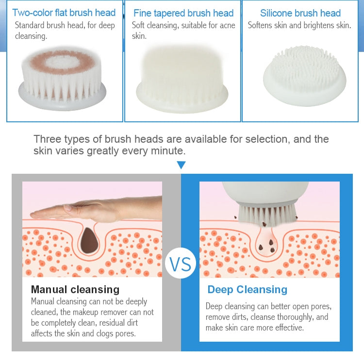 5.Two replaceable brush heads, can help remove oil and dirt, remove dead skin, blackheads, exfoliate and quick makeup removal.