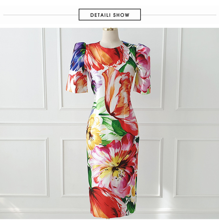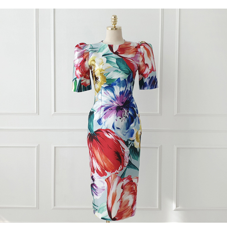 Tingfly Women Vintage Elegant Aesthetic Flower Print Slim Bodycon Dresses